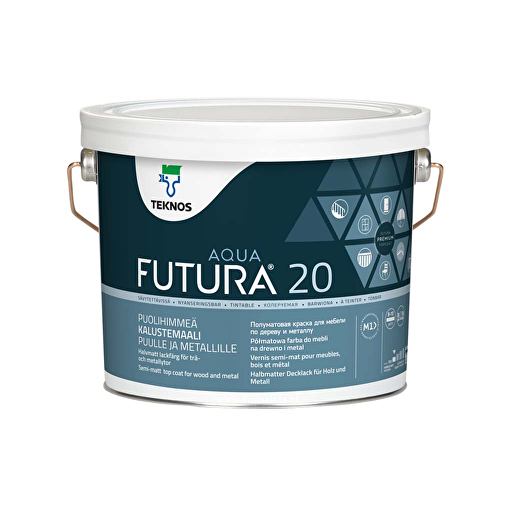Futura Aqua 20 is een sneldrogende, watergedragen semi matte aflak voor binnen en buiten. Dit product is zeer geschikt voor het aflakken van houten ramen, deuren, kozijnen, vensterbanken, trappen, meubelen en overige betimmeringen. Het geschilderde oppervlak is gemakkelijk schoon te houden en heeft een uitstekende kras- en slijtvastheid. Buiten te gebruiken voor het schilderen van reeds gegronde kozijnen, deuren, tuinmeubelen. Binnen is te gebruiken voor gegronde en eerder met alkydverf geschilderde hout-, metaal- en bouwplaatoppervlakken: deuren, kozijnen, kasten, lijstwerk, panelen, paneelplafonds, luchtkanalen, trapleuningen, radiatoren e.d.