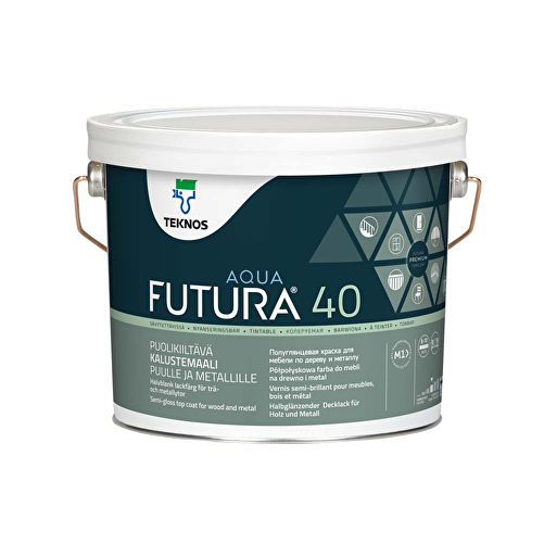 Futura Aqua 40 is een sneldrogende, watergedragen semi matte aflak voor binnen en buiten. Dit product is zeer geschikt voor het aflakken van houten ramen, deuren, kozijnen, vensterbanken, trappen, meubelen en overige betimmeringen. Het geschilderde oppervlak is gemakkelijk schoon te houden en heeft een uitstekende kras- en slijtvastheid. Buiten te gebruiken voor het schilderen van reeds gegronde kozijnen, deuren, tuinmeubelen. Binnen is te gebruiken voor gegronde en eerder met alkydverf geschilderde hout-, metaal- en bouwplaatoppervlakken: deuren, kozijnen, kasten, lijstwerk, panelen, paneelplafonds, luchtkanalen, trapleuningen, radiatoren e.d.