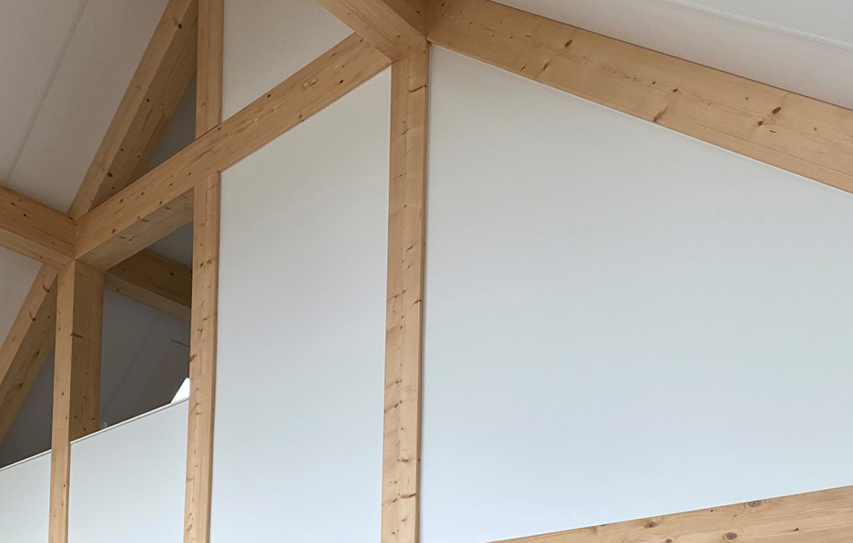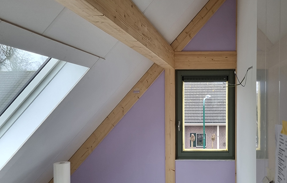 Het Paal & Balksysteem van vurenhout wordt schoongemaakt en geschuurd om vervolgens twee keer te behandelen met de kleurloze Helo Solana Wax van Teknos. Deze wax is voorzien van een UV remmer waardoor hij ook prima kleurloos gebruikt kan worden.