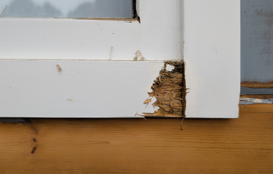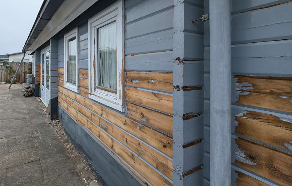 Naar aanleiding van de foto’s wordt eerst een kostenraming gemaakt om te kijken of de werkzaamheden binnen het budget vallen. Daarna maken we een afspraak op locatie om een offerte op maat te maken. Tijdens de opname op locatie werd duidelijk dat er een verkeerd verfsyteem op zat. De verf is niet dampdoorlatend en flexibel genoeg om ‘de beweging’ van de grenenhouten los op te vangen. Het gevolg hiervan is een hoog vochtgehalte, scheurvorming van de verf, onthechting en houtrot.