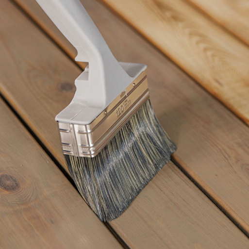 Verwijder alle losse delen, vuil, stof en broze toplagen van het hout van het oppervlak met een staalborstel, schrobborstel of schraperReinig het te behandelen oppervlak. Gebruik indien nodig een terrasreiniger op de te behandelen oppervlakken. Spoel de oppervlakken grondig af met water en laat ze drogen. Verwijder alle losse en slecht hechtende oude materie en pluizige toplagen van het hout. Verwijder oude verf- of laklagen.