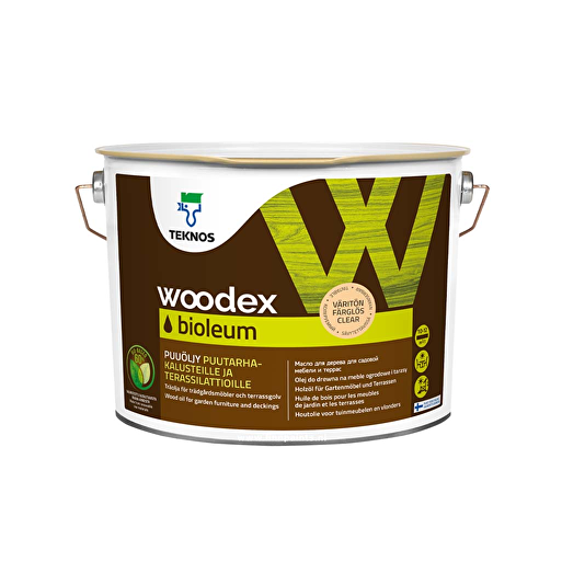 Roer het product goed door voor gebruik. Het gekleurde product moet, indien nodig, ook tijdens het aanbrengen worden geroerd. Behandel het oppervlak slechts één keer gelijkmatig met een kwast, spons of spuitapplicatie. Breng Woodex Bioleum zo aan, dat het een dun, egaal gekleurd oppervlak vormt. Een dikkere laag kan vlekken veroorzaken, vertraagt het droogproces en kan zelfs afschilferen. Eventueel overtollige olie kun je met een doek afvegen na ongeveer 10 minuten. Geschikte nozzel voor airless spuiten 0,009 – 0,015″.
